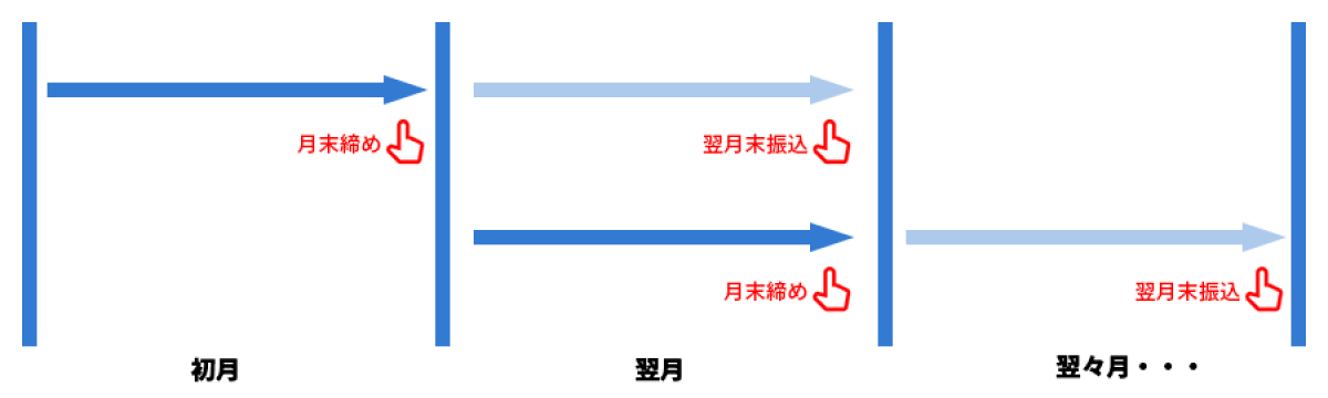 「クレジットカード決済」「集金代行」で購入された代金はACTぴっとに支払われ、預かり金となります。預かり金は毎月、月末締めで集計を行い、販売手数料を差し引いた金額を翌月末に販売者様の銀行口座へ振込ます。