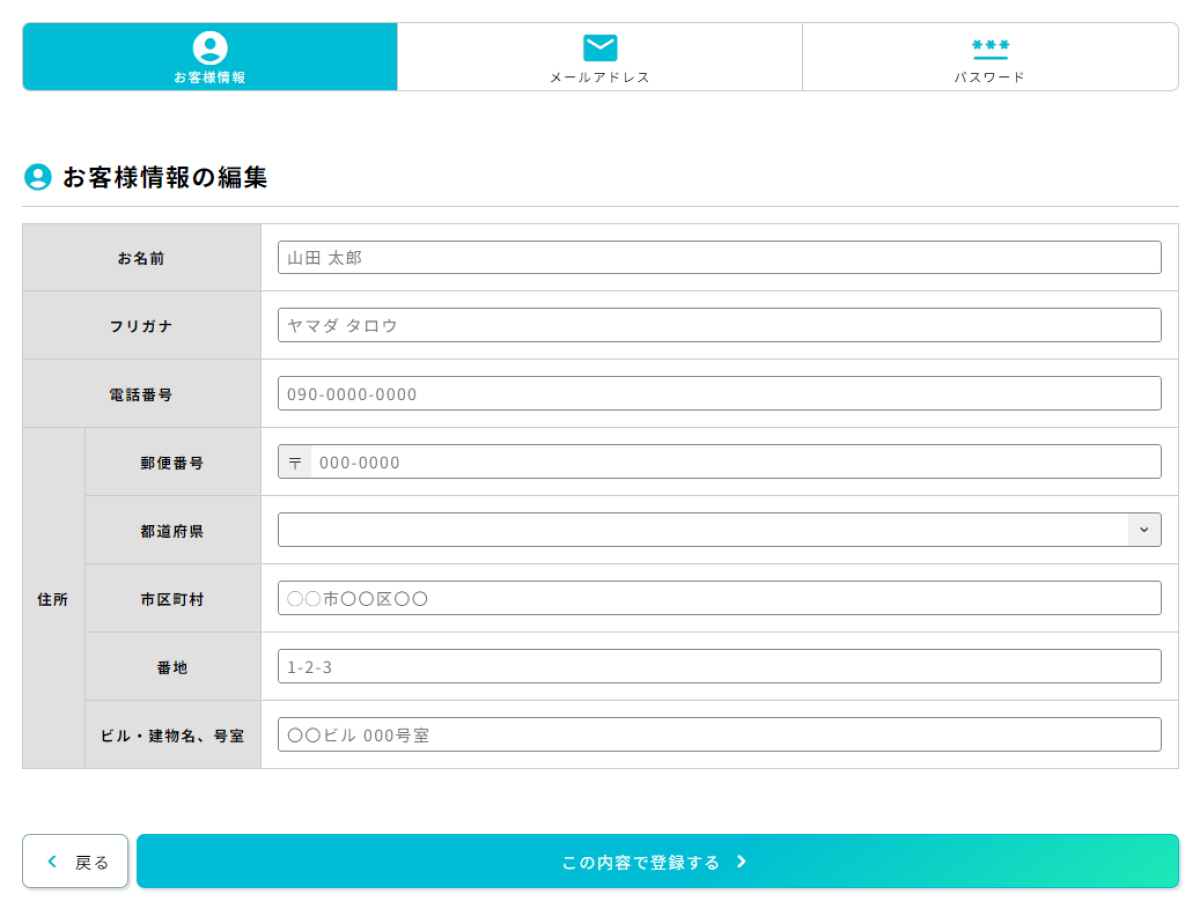 「お名前」「フリガナ」「電話番号」は販売者が連絡・確認の為に利用する場合があります。正しい情報を入力しましょう。