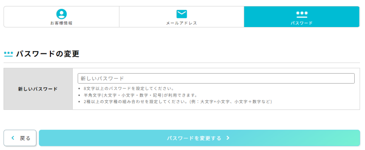 パスワードには、半角文字(大文字・小文字・数字・記号)が利用できます。